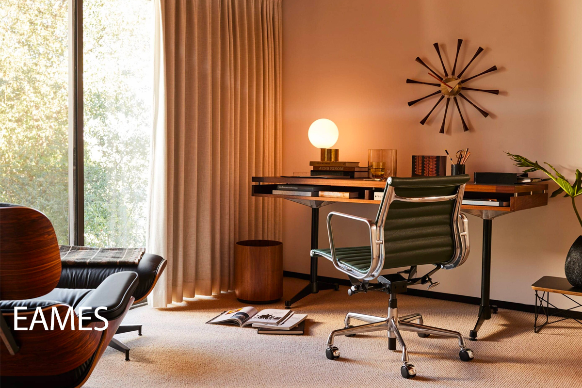 HermanMiller home office options provide impeccable style. They have successfully bridged the home + work environment with furnishings that can also create a distinctive resimercial small business environment. This product board is a departure from our usual focus on single style groups because HermanMiller has a broad range of distinctive options worth exploring in a home office or small business setting for a unique brand experience. We’ve selected a few options that fit HermanMiller’s most iconic styles to give your work-from-home experience a more personal touch: