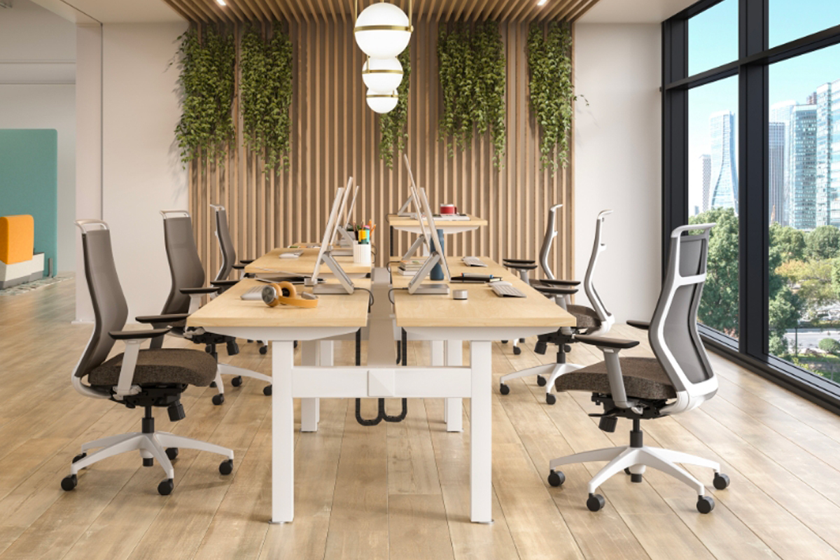 SitOnIt HiQ Adjustable Height Benching provides a foundation of functionality. From productivity hubs to collaboration hotspots, create places for “getting it done” with HiQ™. Hybrid office design benefits from the flexibility of this benching system to maximize team collaboration. It’s a height-adjustable total benching solution that promotes healthier environments through essential ergonomics, connectivity, and workspace division.